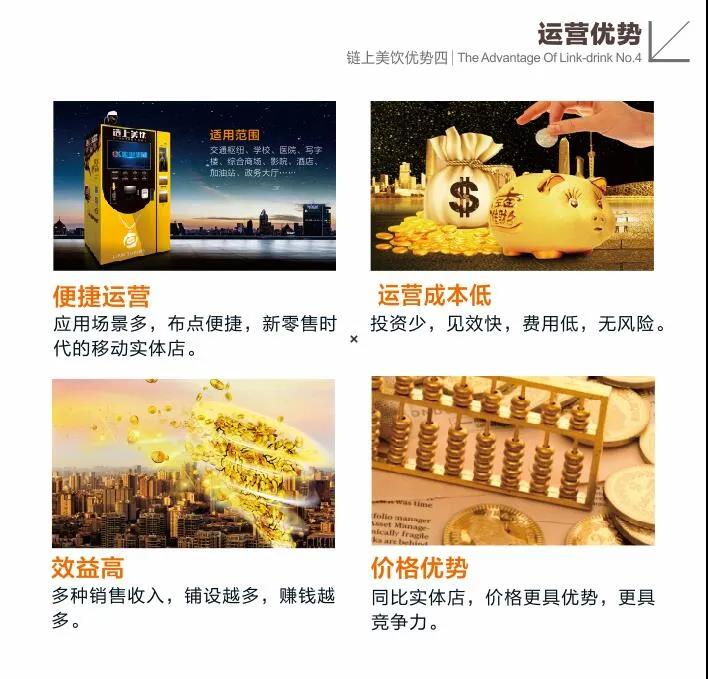 口味更多更营养:索伊超大8+1料盒组合,兼顾热饮、冷饮、冰饮等多种口味,使得现磨咖啡、现调奶茶、草本养生、冰镇饮品等40余种饮品一机实现;24小无人值售;数据化后台管理,维护简单方便;支持刷卡、扫码,一键点击,即时享用。