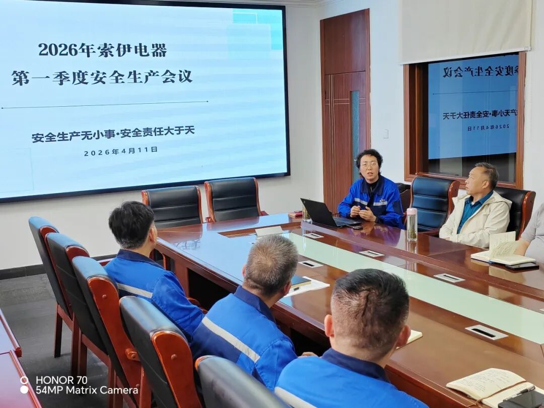 2026年4月11日下午,索伊电器安全生产委员会在公司多功能会议室召开2026年第一季度安全生产工作会议,全面总结一季度安全生产成效,精准部署下一阶段重点任务。公司安委会全体成员参会,会议由安委会副主任汪显华主持,特邀安全生产...